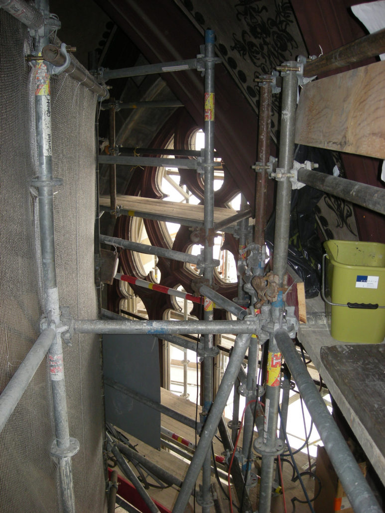 Kittfälze ersetzen, kleine Reparaturen, reinigen, neue Schutzverglasung, Dokumentation - Kirche Reussbühl 2008: