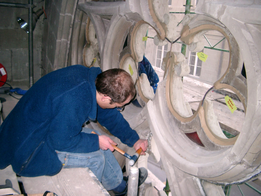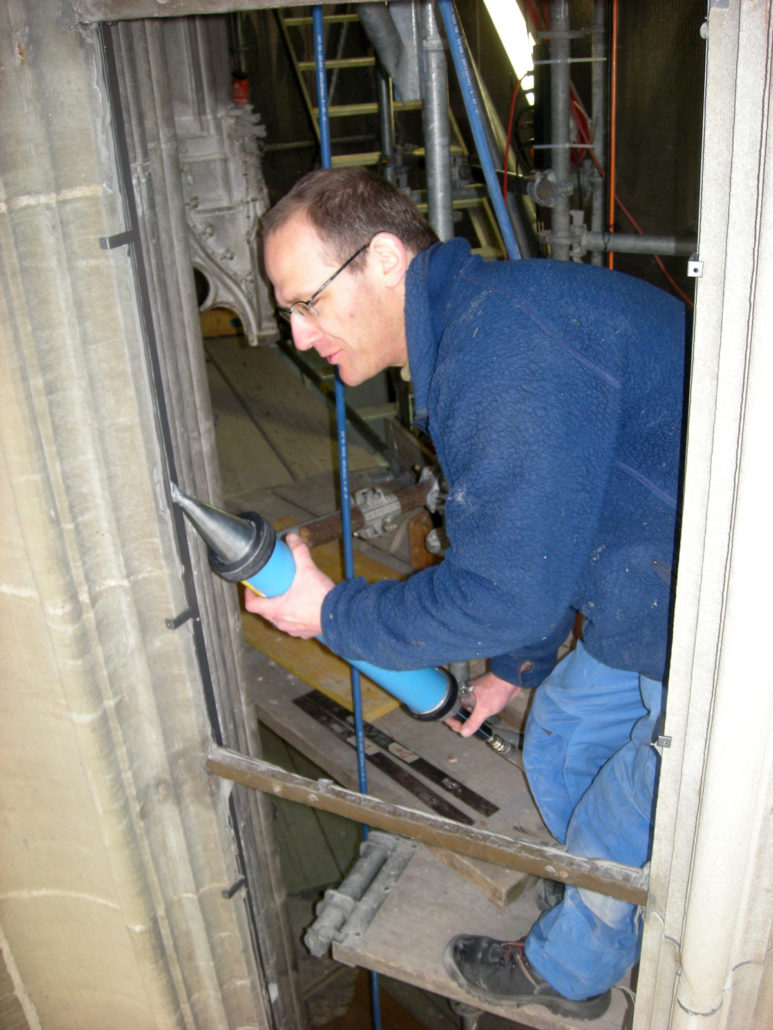 Kleine Reparaturen, Bleiverglasungen reinigen - Kathedrale Fribourg 2004: